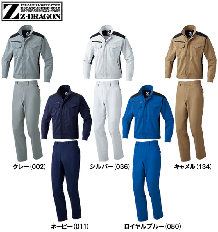 カラー グレー(002) ネービー(011) シルバー(036) ロイヤルブルー(080) キャメル(134) サイズ ジャンパー:SS-5L ノータックパンツ:70cm-120cm 加工 ※ご要望の加工は下のバナーをクリックしてお求めくださいませ。