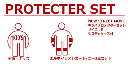NEW STREET MOVE キッズ プロテクター 3点 セット Sサイズ システムケース付属 Kids Protector Setプロテクタ インライン スケート ローラースケート SKATE